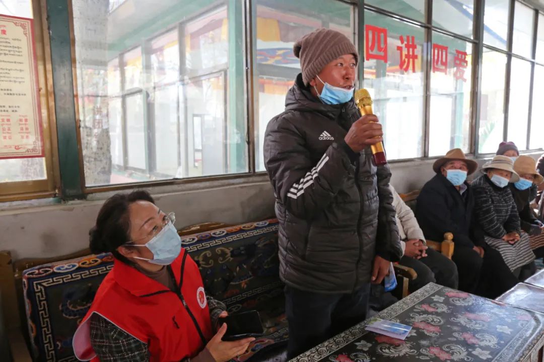 活动中,宣讲员索朗旦巴用通俗易懂的语言向大家宣讲党的二十大精神,大家积极互动,社区居民拉巴卓玛、普布卓嘎、扎西卓嘎和西洛深情诵读了党的二十大报告金句,现场不时响起阵阵掌声。