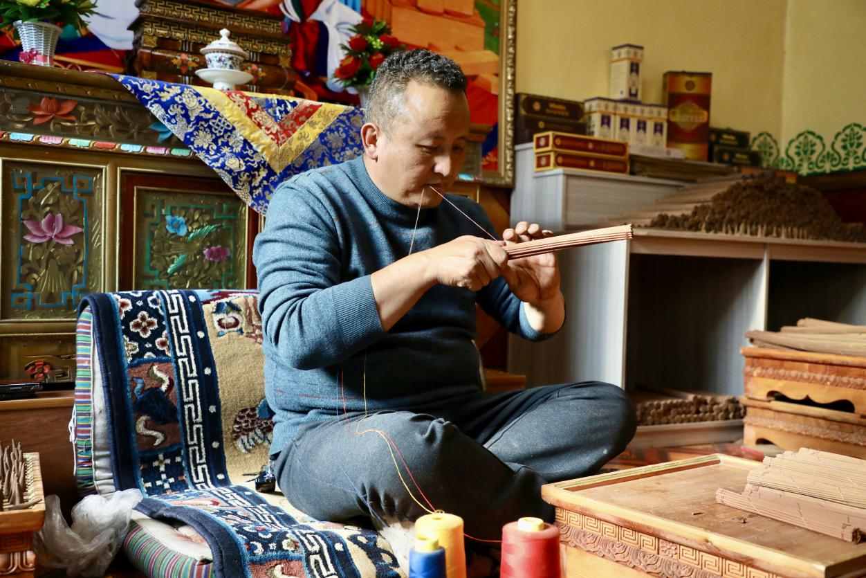 捆扎藏香。人民网次仁罗布摄