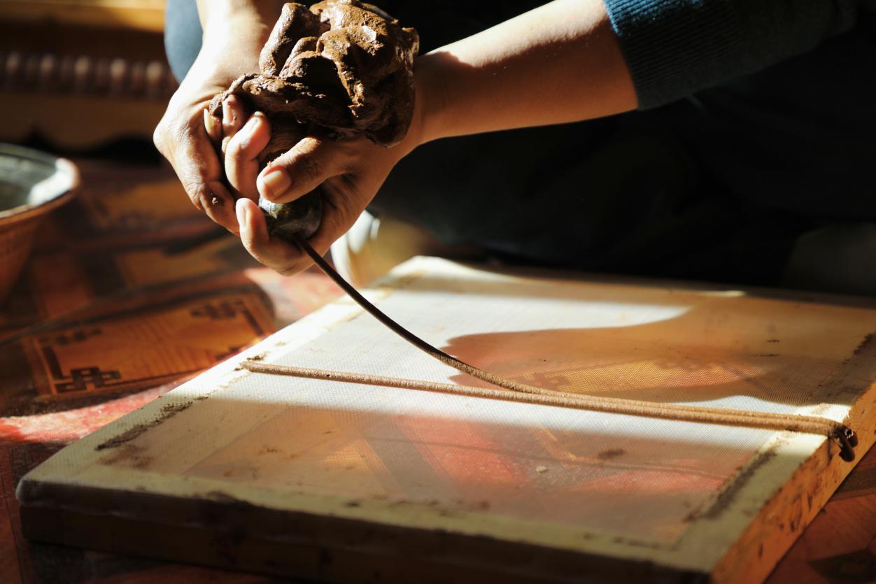 牛角钻孔,将木泥挤出。人民网次仁罗布摄