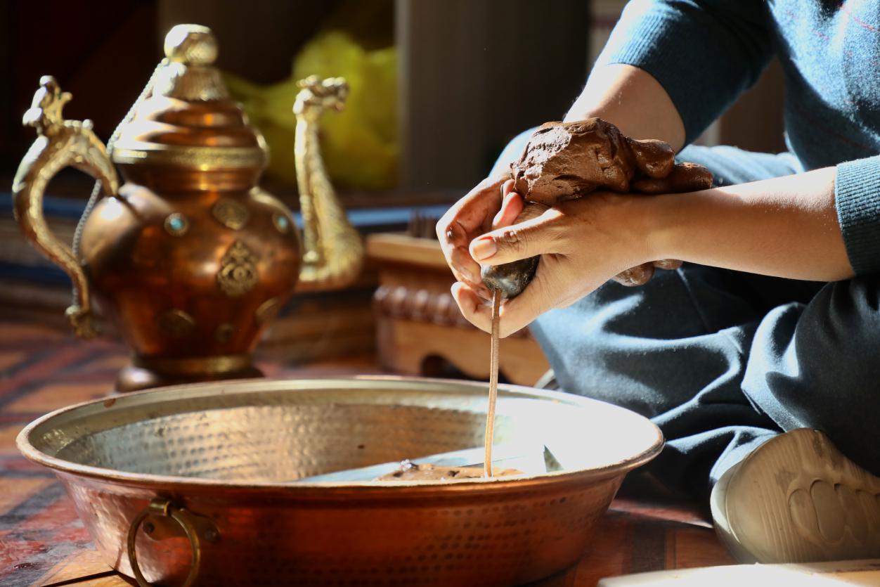 在藏香发源地——西藏尼木县吞巴镇吞达村,氤氲了1300多年的香气依然沁脾。这里有近一半的村民从事藏香制作。尼木县的“藏香制作技艺”是国家级非物质文化遗产,它的制作过程繁复,匠人需先用水磨将主要原料柏木碾成木浆,再将木浆晾晒制成香砖。随后,把香砖揉碎,并加水制成香泥,按严格的比例配方加入藏红花、麝香、檀香等数十种香料、药材,塞入牛角挤压成条,晾干后才成藏香。