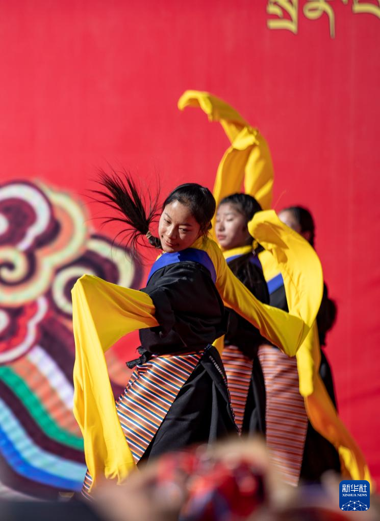 12月10日,当地群众在展销会开幕式上表演歌舞。新华社记者 姜帆 摄