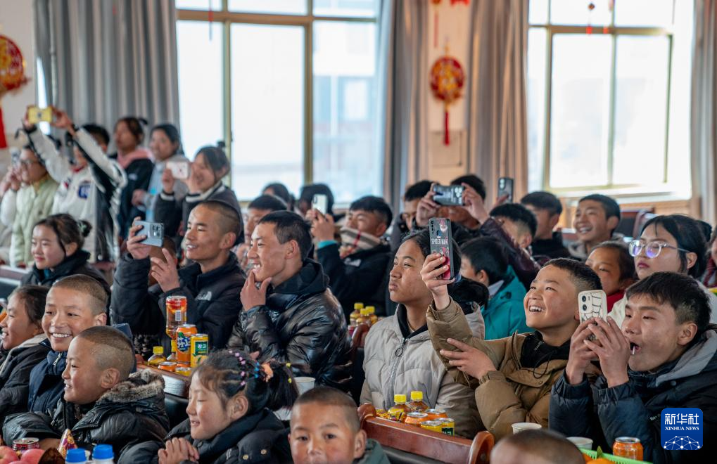 福利院小朋友们在观看联欢会表演。新华社记者 丁增尼达 摄