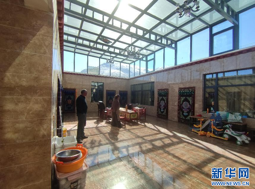 村民贡嘎是克日村第二批“美丽乡村·幸福家园”建设行动计划的参与者,翻新房子70%的费用由当地政府补贴,自己只需支付30%,如今房屋已改造完毕,一家子正式入住。孙子们在光洁的地面玩耍,和煦的阳光从屋顶的阳光棚照进客厅,温暖了整个冬天。