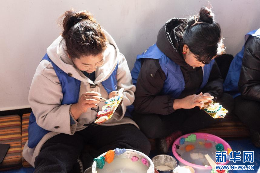 图为西藏现代服务业技工学校的学员正在学习制作酥油花(1月29日摄)。新华网发 李腾 摄