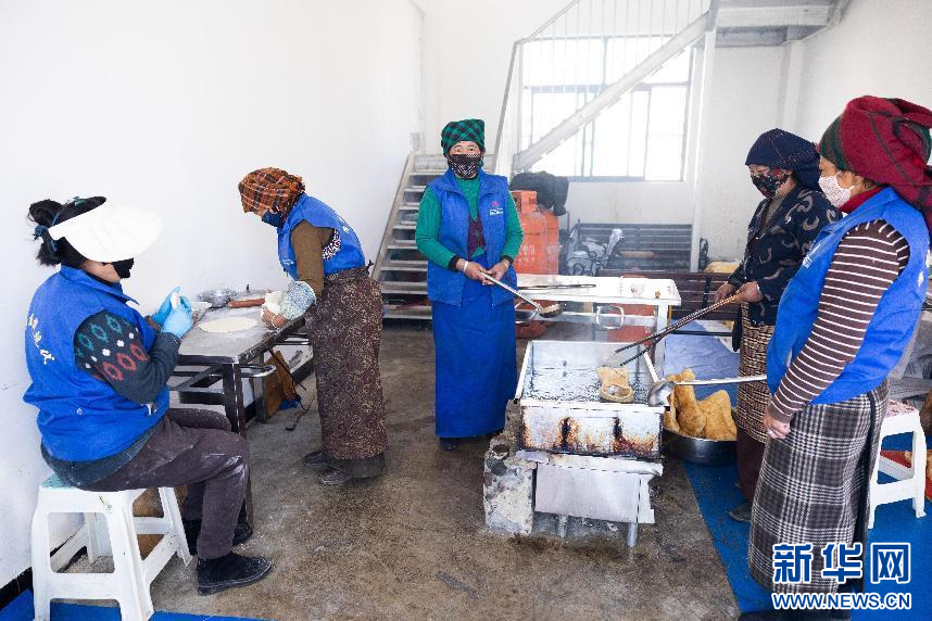 图为西藏现代服务业技工学校的学员正在制作卡塞“德格”(1月29日摄)。新华网发 李腾 摄