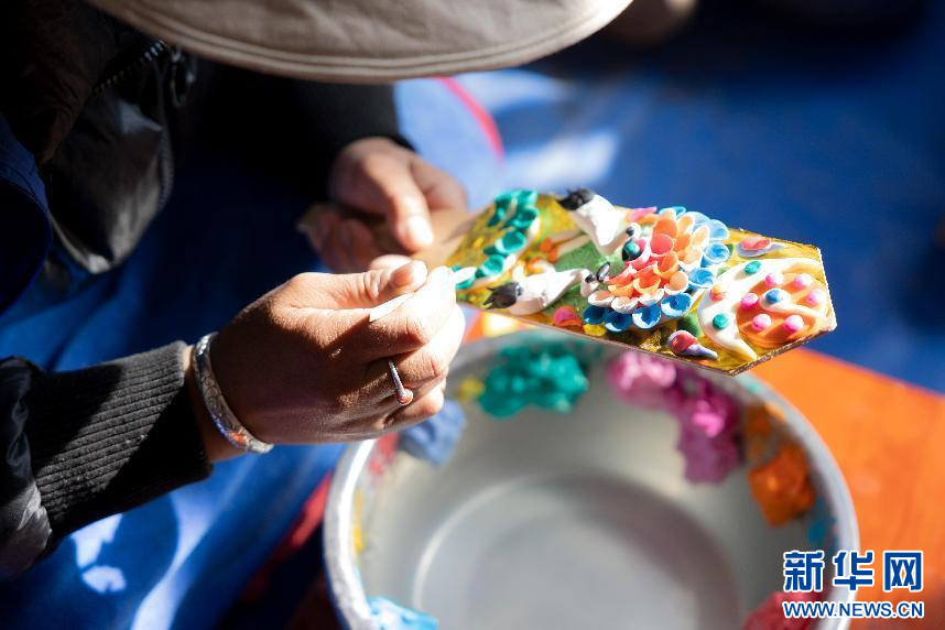 图为西藏现代服务业技工学校的学员制作出的卡塞“德格”(1月29日摄)。新华网发 李腾 摄