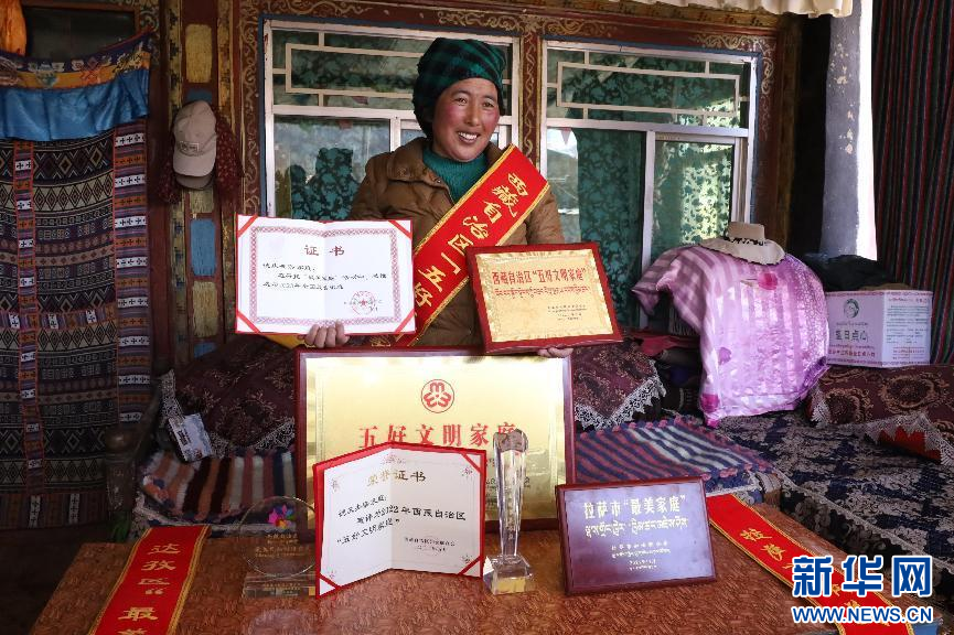德庆央宗家庭在2022年5月被评为“西藏自治区五好家庭”,2023年又被评为“全国最美家庭”(1月29日摄)。新华网发 李腾 摄