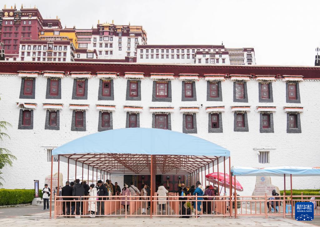 5月5日,游客在布达拉宫景区入口排队等候参观。新华社记者 丁汀 摄