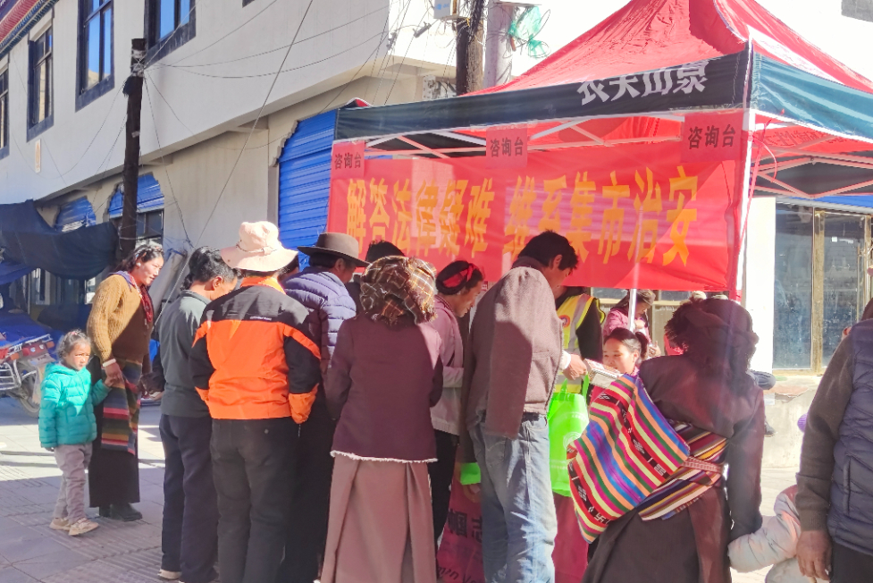 强保障,焕发为民服务新活力。农贸集市建设切实把增加农牧民群众收入作为出发点和落脚点,为各村设置合作社产品展销摊位,引导驻村干部、乡村振兴专干当好特色农产品的“宣传员”和“推销员”,开集首日吸引320余消费人次,交易额达51000余元,点燃群众增收致富“强引擎”。同时,发挥本镇“政策专家”“土专家”人才作用,举办法律法规、社会救助、移风易俗等政策宣讲活动,现场解答群众咨询200余人次,以“零距离”的宣传方式,将“普法阵地”移至集市,有效倾听群众心声,满足群众多元化需求。