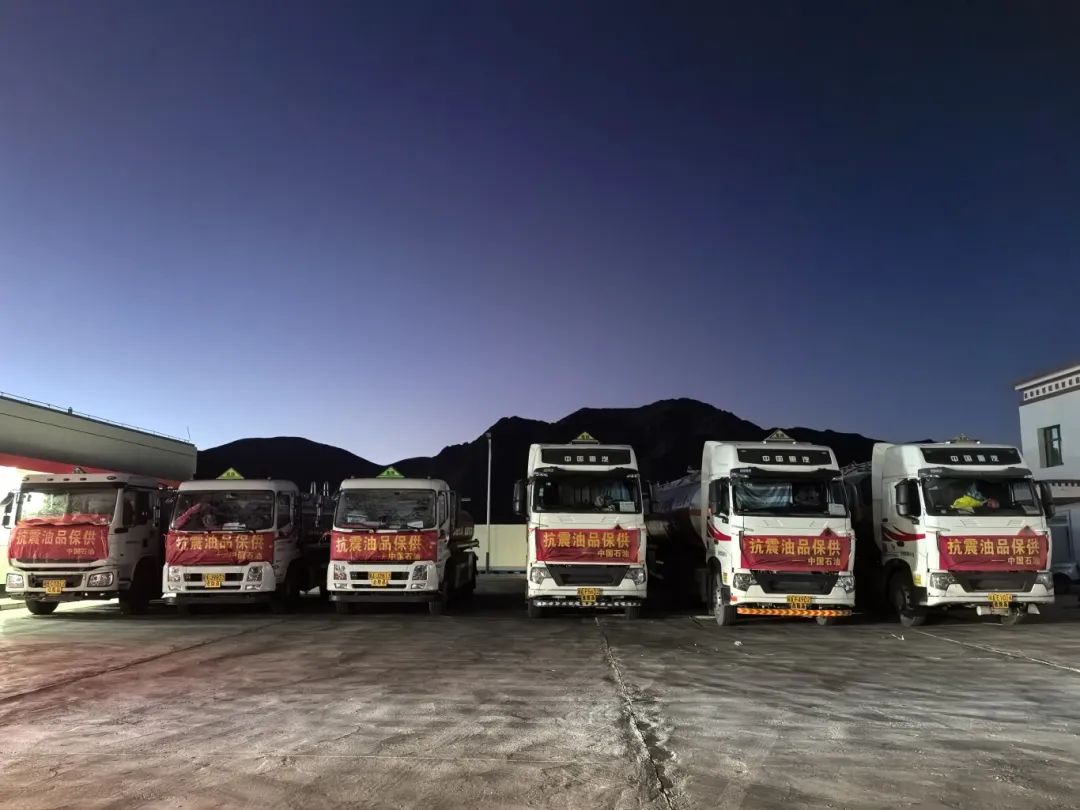 装满油品的6辆油罐车,在珠峰南加油站“以车代库”,随时保障资源充足。
