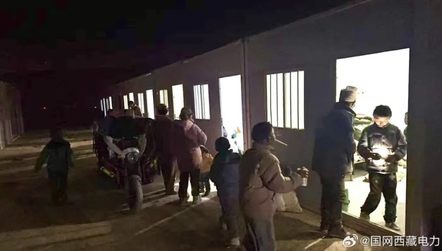 震后第四夜,经过国网西藏电力一线工作人员连续奋战,截至1月10日21时30分,日喀则定日县曲洛乡措昂村、热木青村,长所乡古荣村、森嘎村,177个活动板房实现通电。夜幕中,一盏盏明灯被依次点亮!