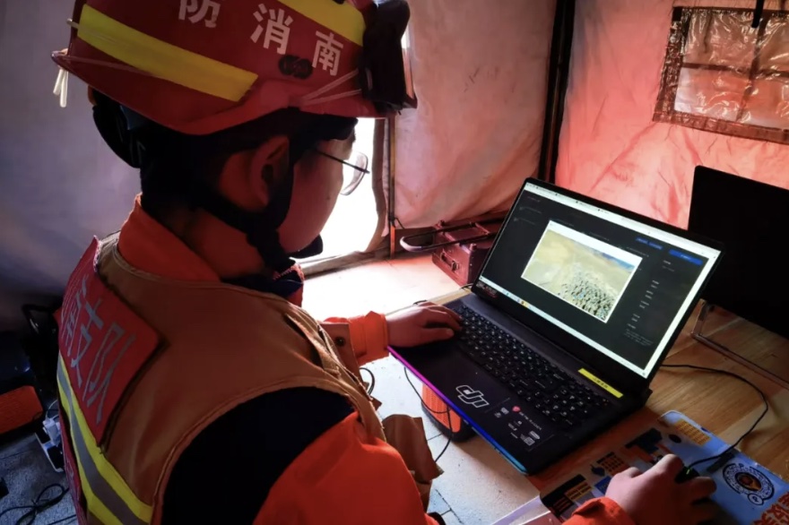 获得批准后,孟泽宇迅速抵达定日县曲洛乡灾区,按照总队前突指挥部的部署,携带5G单兵、布控球、无人机等通信器材装备,搭建“前突指挥部——救援现场”两级通信平台。