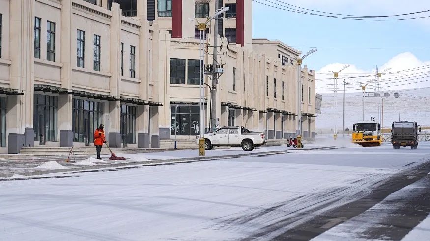 1月13日,那曲市迎来了2025年首场降雪。雪花纷纷扬扬落下,为市区披上银白色外衣,同时也给市民出行带来了不便和安全隐患。对此,色尼区以雪为令,迅速启动清雪应急预案,全力投入到清雪除冰作业中,保障全区道路畅通和市民出行安全。