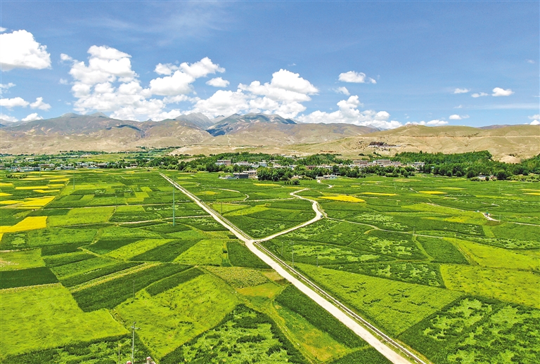 从空中俯瞰,纵横交错的乡村公路在广袤的高原上绘就壮美画卷。这些公路不仅是交通线,更是致富线、幸福线,承载着高原人民对美好生活的向往,见证着乡村振兴的坚实步伐。在阳光照耀下,条条公路如同大地的血脉,为雪域高原注入新的生机与活力,铺就了一条通往全面小康的康庄大道。