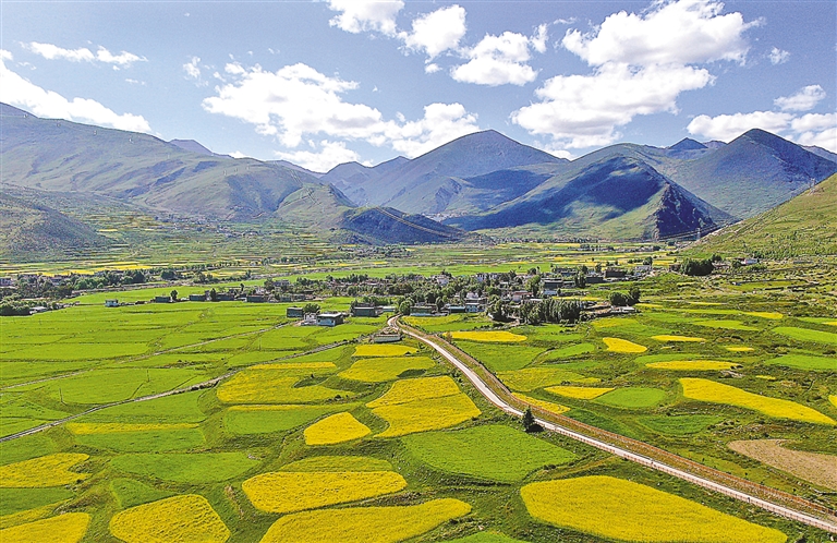 盛夏时节,驱车行驶在拉萨市墨竹工卡县的乡村公路上,两侧金黄的油菜花海与黝黑的柏油路相映成趣,满载青稞的农用车与色彩鲜艳的农村客运班车擦肩而过,勾勒出一幅流动的丰收图景。这样的景象在如今的西藏乡村已成为常态,一条条崭新的公路正悄然改变着高原大地的面貌。