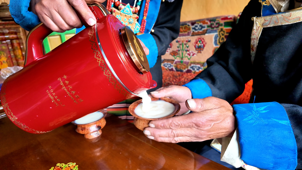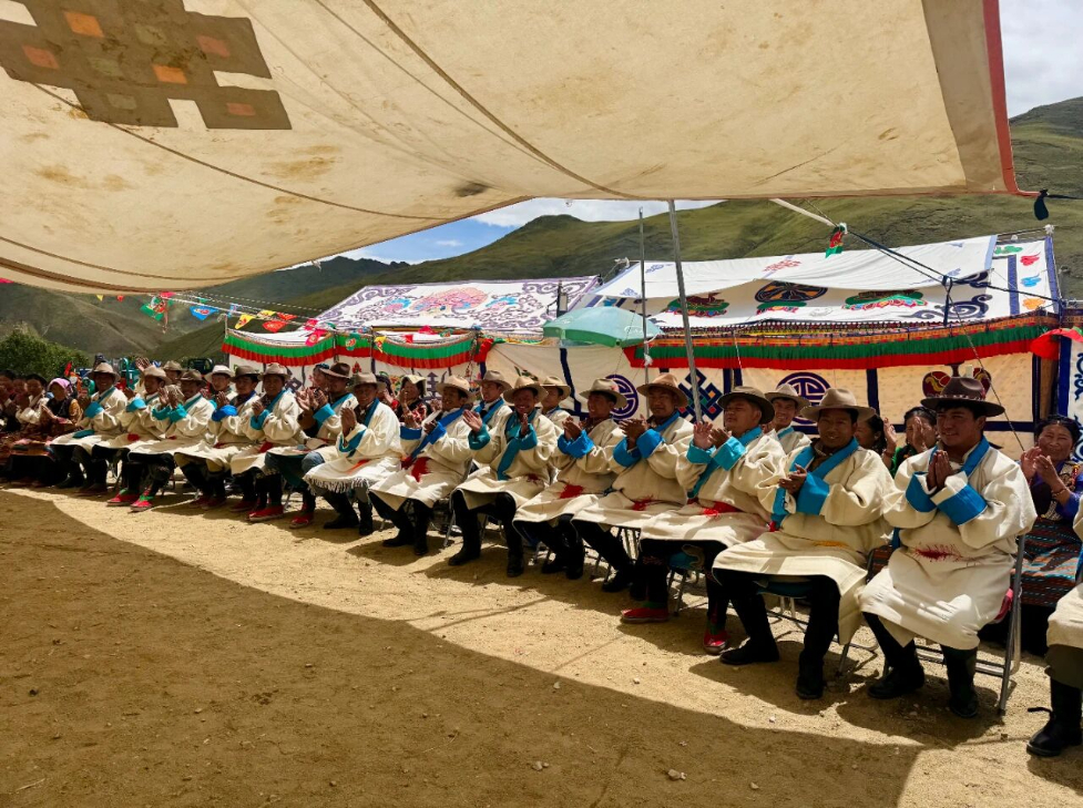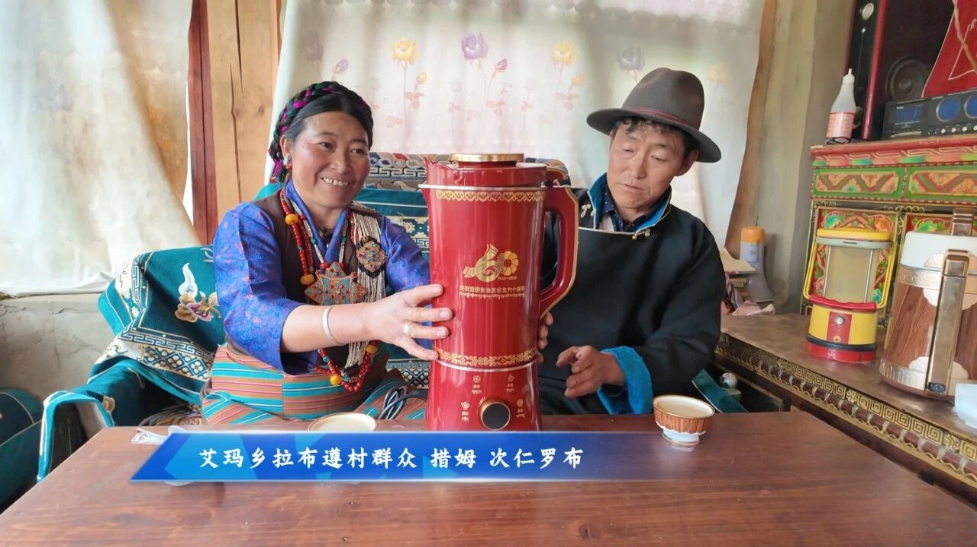 9月1日,艾玛乡拉布遵村望果节现场洋溢着喜庆祥和的氛围,中央代表团赠送的西藏自治区成立60周年庆祝活动纪念品发放仪式在这里隆重举行,向全村集中发放全自动酥油茶壶。