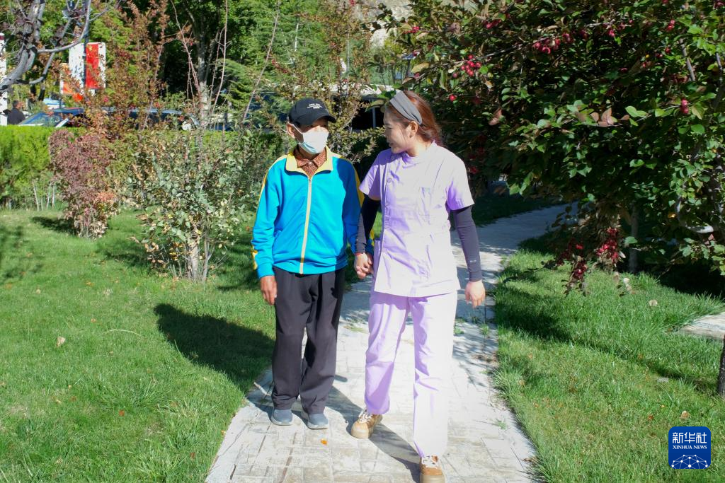 在拉萨西郊的西藏自治区残疾人托养服务中心,无障碍通道蜿蜒穿过绿植环绕的庭院。