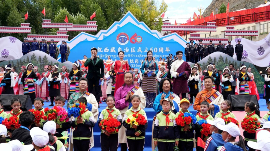 图为活动现场(无人机照片)。新华网发 索朗多吉摄