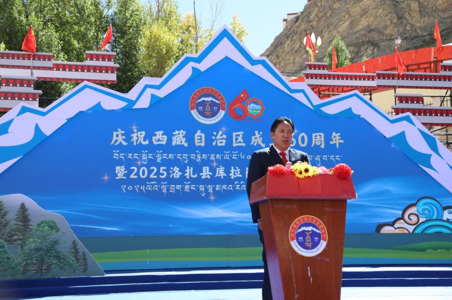 洛扎县委副书记,政府县长付成聪在致辞中表示,今年是西藏自治区成立60周年,举办庆祝西藏自治区成立60周年暨2025洛扎县库拉岗日文化旅游节,旨在礼赞新时代,唱响民族团结主旋律,凝聚新共识,谱写和谐发展新篇章。站在新的历史起点,洛扎县将感恩奋进、担当实干,共同谱写社会主义现代化新洛扎的绚丽篇章。