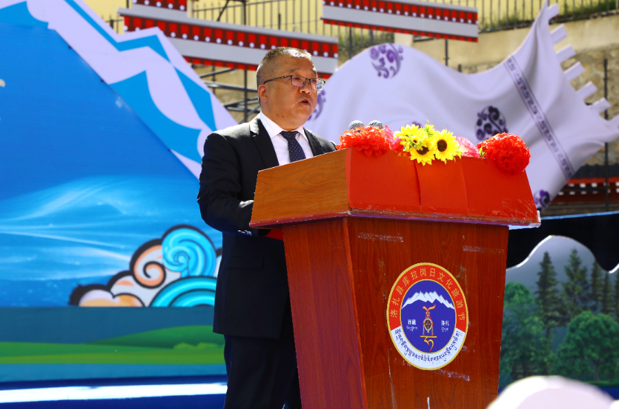 图为洛扎县委书记扎西多布杰宣布文化节开幕。新华网发 吕娟摄