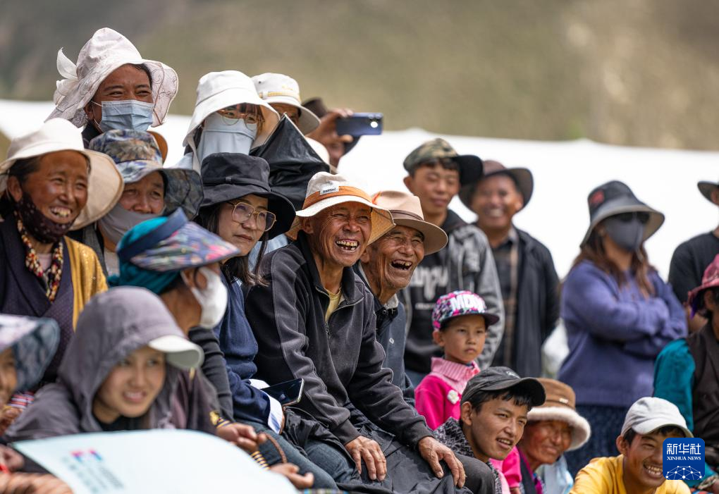 在山南市琼结县强吉村第二届林卡大会现场,当地群众在观看演出(9月13日摄)。新华社记者 丁增尼达 摄