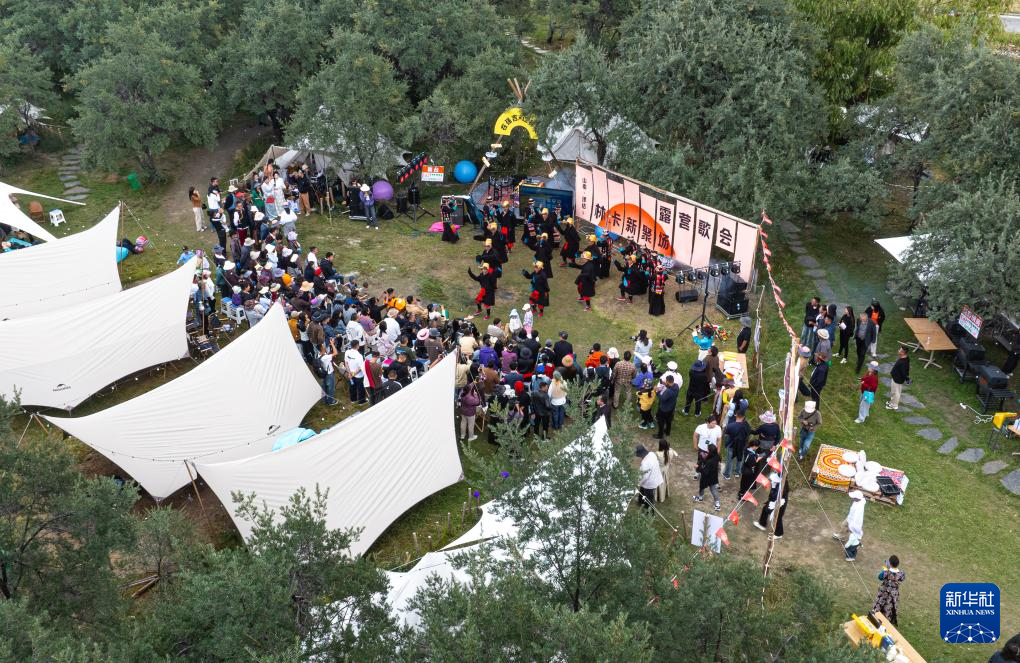 山南市琼结县强吉村第二届林卡大会现场(9月13日摄,无人机照片)。新华社记者 丁增尼达 摄