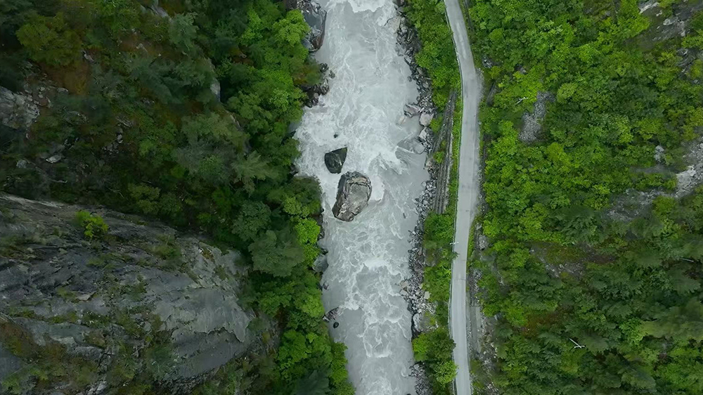 图为奔流不息的洛扎雄曲。(无人机照片) 受访者供图