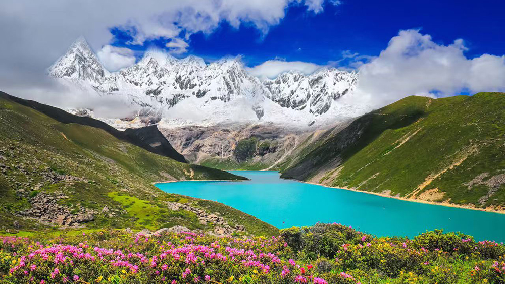 图为库拉岗日雪山与白玛林错。 受访者供图