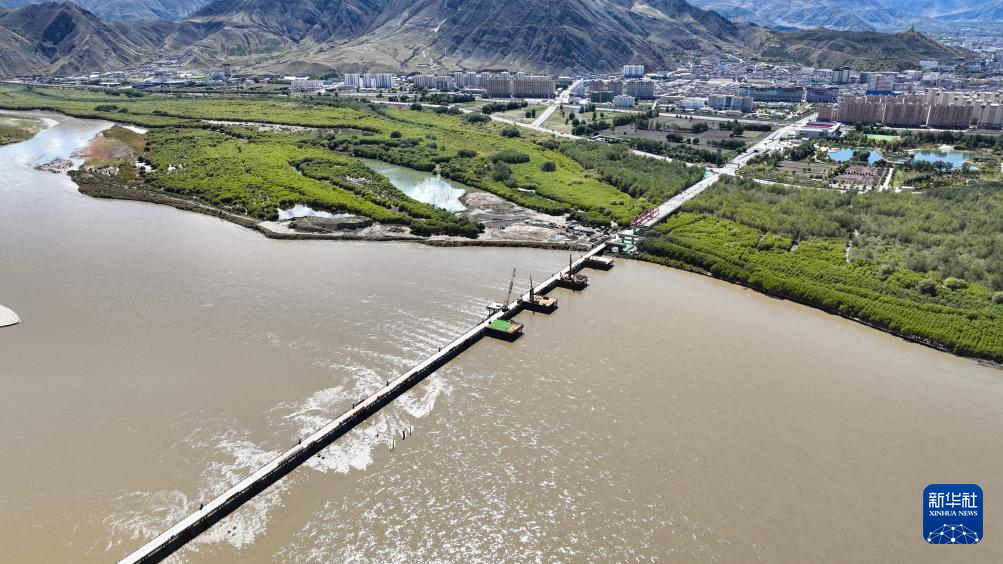 建设中的萨热路跨江大桥(无人机照片,9月26日摄)。新华社记者 晋美多吉 摄