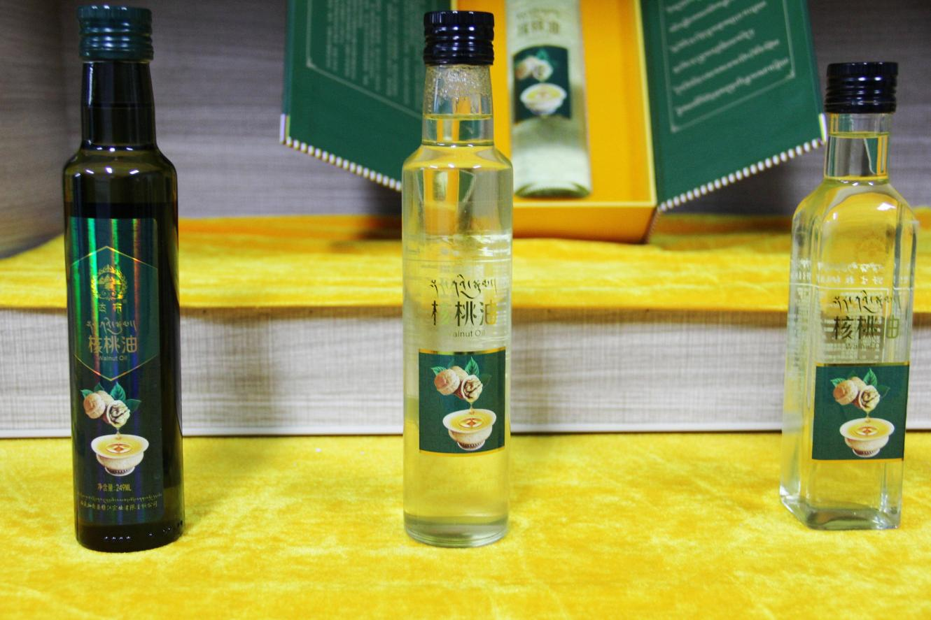 图为加查县“达布”有机核桃油产品。新华网发 赵萨 摄