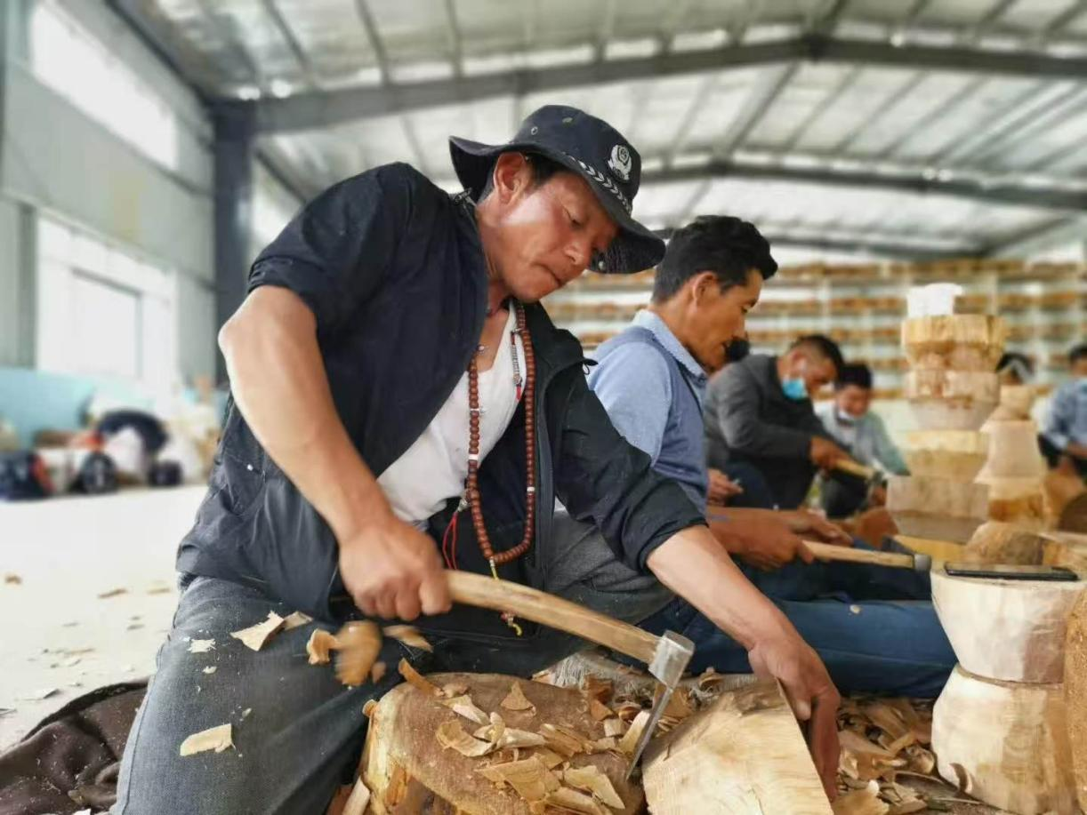如果说核桃油产业是民族团结的“经济纽带”,那么非遗传承则成为文化交融的“精神桥梁”。成立于2014年的加查达布传统文化产业发展有限责任公司,由西藏自治区级非遗传承人桑珠领衔,团队成员互帮互学、携手创新:汉族设计师融入现代审美改良传统木碗纹样,让千年技艺更贴合市场需求;藏族工匠倾囊相授古法木碗制作技艺,让传统匠心得以延续。加查县丰富的优质木材资源与多元包容的文化氛围,为木碗产业注入独特魅力,桑珠带领团队搭建的线上线下一体化销售网络,不仅让有着“英雄碗”美誉的达布木碗走进内地千家万户,更成为展示高原民族文化、促进跨民族交流的重要窗口。