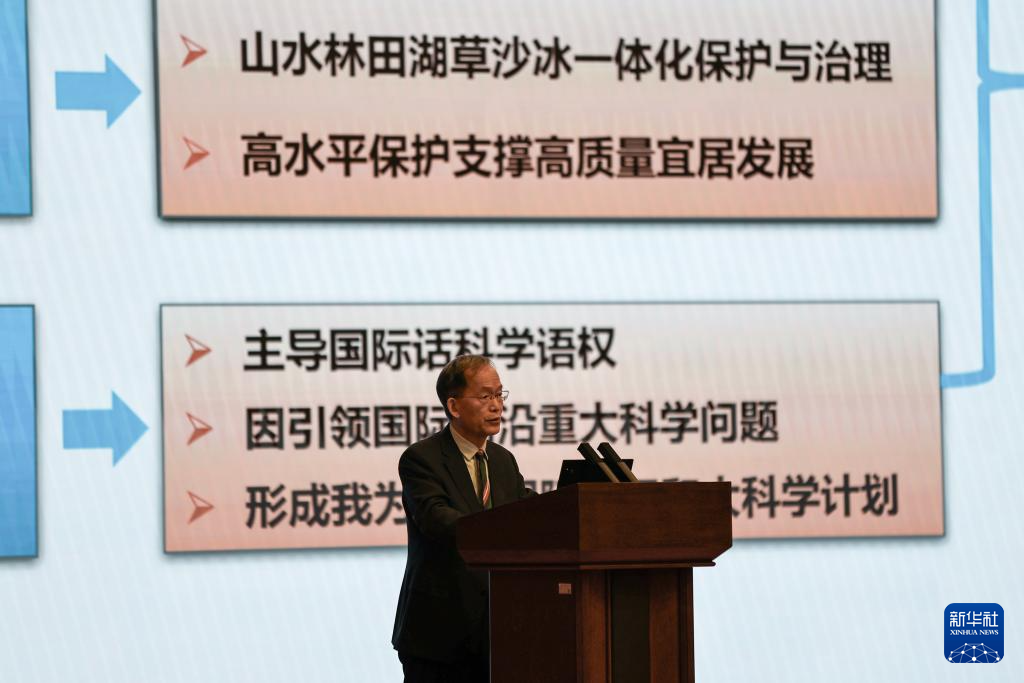 11月19日,中国科学院院士、第二次青藏科考队队长姚檀栋在发布会上介绍第二次青藏科考“十大应用成果”。新华社记者 姜帆 摄