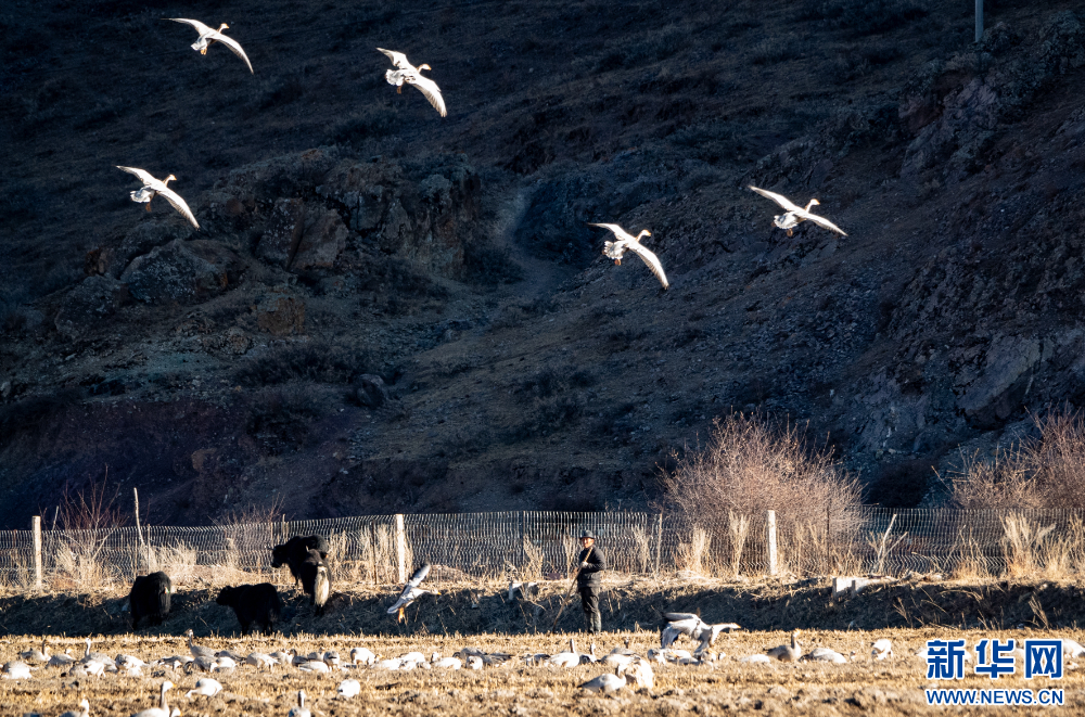 这是11月26日在西藏拉萨市林周县境内拍摄的斑头雁。新华网 旦增努布 摄