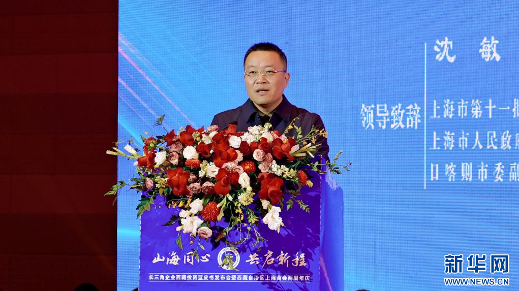 上海市第十一批援藏干部联络组组长,日喀则市委副书记、常务副市长沈敏与西藏自治区投资促进局党组书记、局长王友华共同发布蓝皮书。上海社会科学院专家杨亚琴代表课题组作蓝皮书解读。