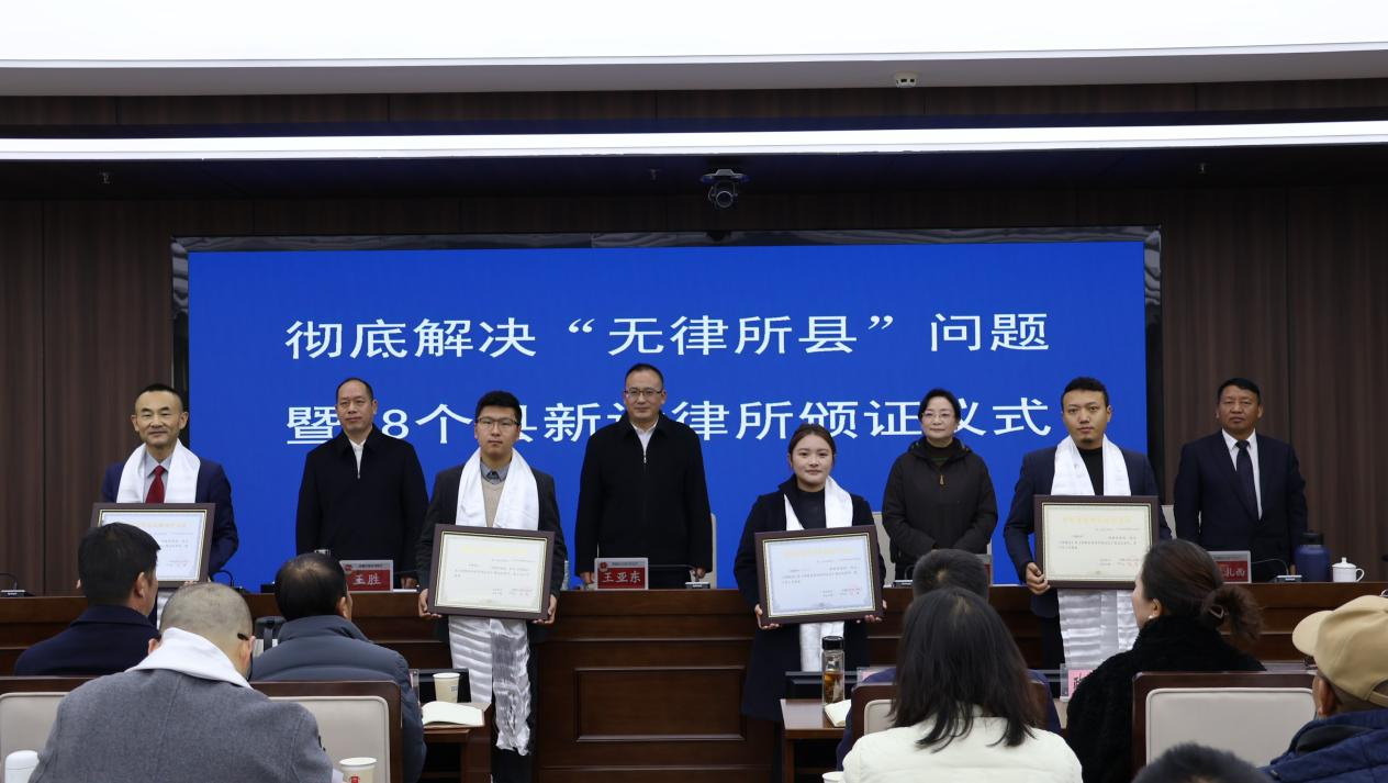 12月1日,西藏自治区司法厅在拉萨举办全区最后18个“无律所县”新设律师事务所集中颁证仪式。此举标志着西藏自治区彻底消除了“无律所县”,历史性实现全区74个县域的律师事务所全覆盖,打通公共法律服务的“最后一公里”。