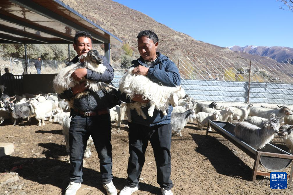 村民在扎嘎新村养殖合作社。新华社发(侯勇 摄)