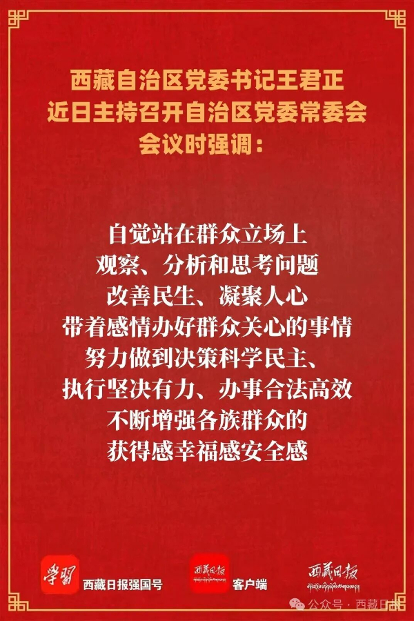 近日,自治区党委书记王君正主持召开自治区党委常委会会议,认真传达学习习近平总书记听取中央巡视情况汇报时、在11月28日中共中央政治局会议上的重要讲话精神,传达学习二十届中央巡视省(自治区、直辖市)集中反馈会议和中央第十四巡视组巡视西藏自治区情况反馈会议精神,研究部署我区整改落实工作。