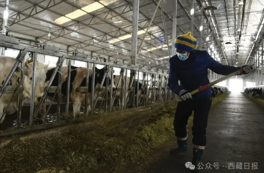 图为拉萨市城关区高标准奶牛养殖中心的工作人员正在清理牛舍。记者 旦增兰泽 摄