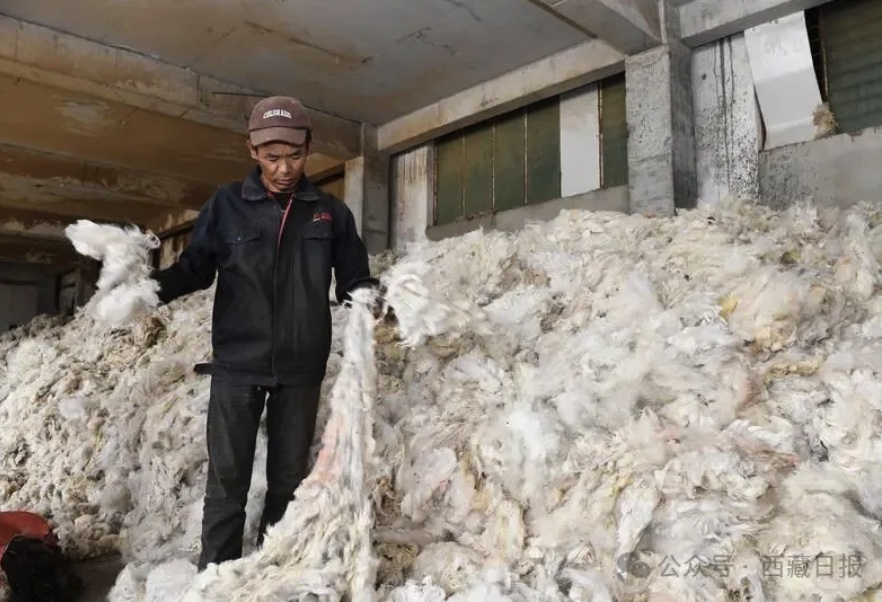 图为西藏圣信工贸有限公司的工人正在对羊毛进行分拣。记者 旦增兰泽 摄