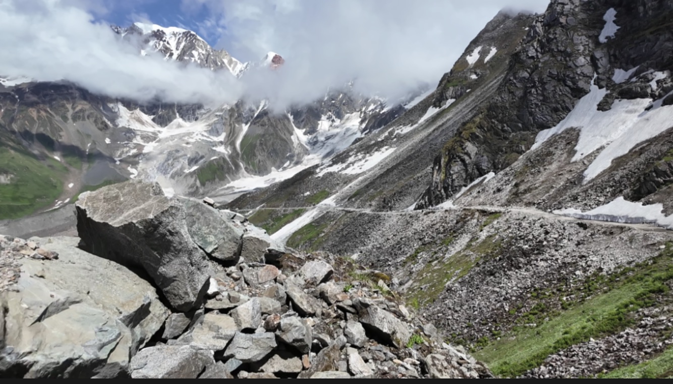 ▲嘎隆拉山的翻山之路。