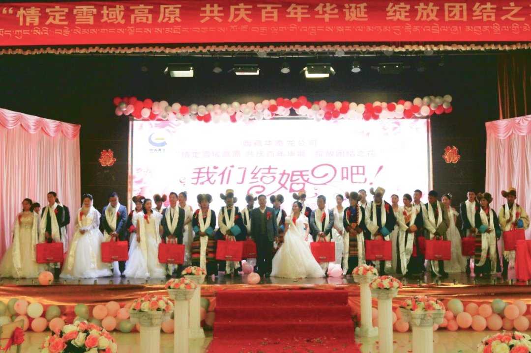 为促进各民族文化交融,公司搭建了多元文化交流平台,定期举办集体婚礼。图为西藏华泰龙公司举办第六届集体婚礼