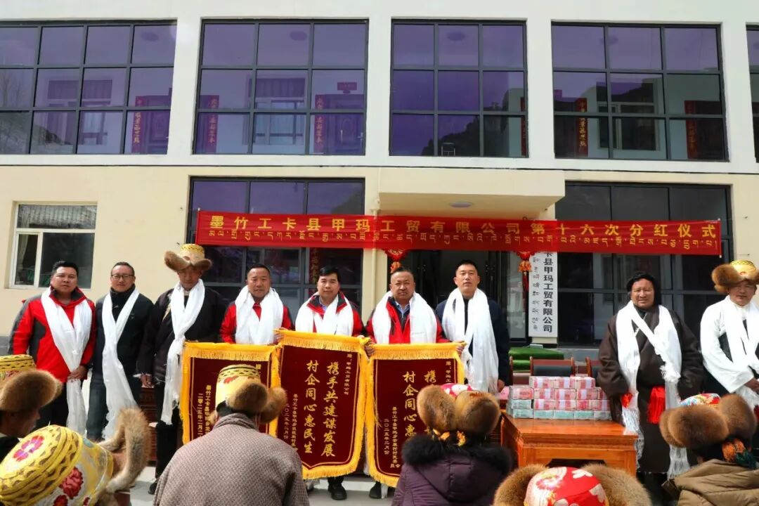 西藏华泰龙公司创新打造并持续践行“甲玛模式”,这一模式实现了企业增效、地方增收、群众受益的三方共赢。图为甲玛工贸公司第十六次分红