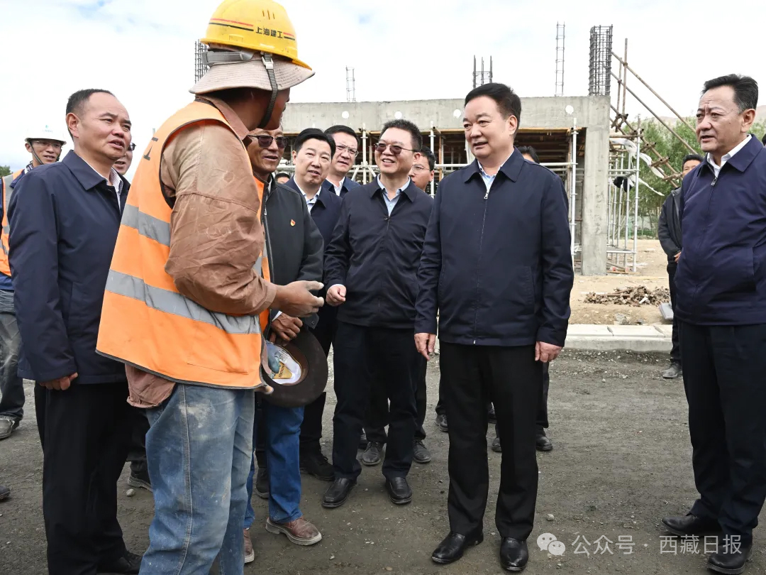 2025年6月18日、20日,自治区党委书记王君正在日喀则定日、拉孜调研地震灾后恢复重建工作。这是王君正在定日县长所乡森嘎村施工现场,与务工村民亲切交流。 记者 李洲 摄