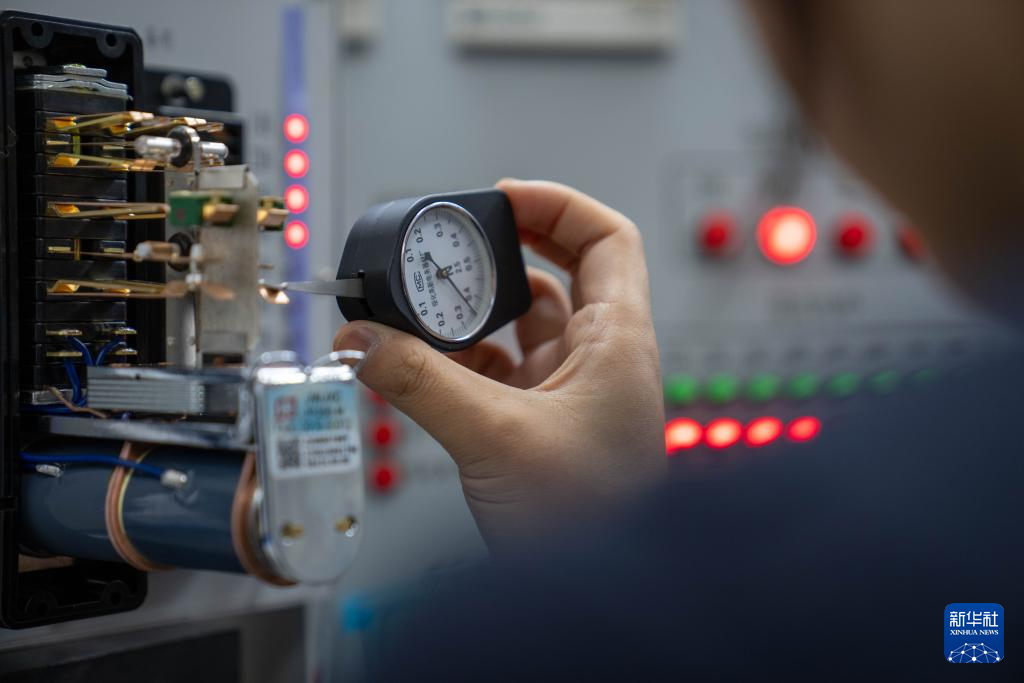 1月6日,拉萨基础设施段电务专修车间继电器检修工区的信号工丁增央金在测试继电器节点压力。新华社记者 旦增尼玛曲珠 摄
