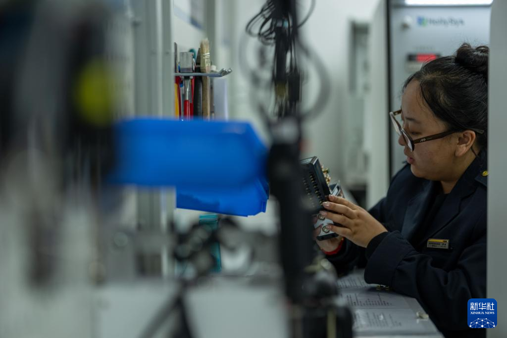 1月6日,拉萨基础设施段电务专修车间继电器检修工区的信号工路东燕在调试检测台。新华社记者 旦增尼玛曲珠 摄