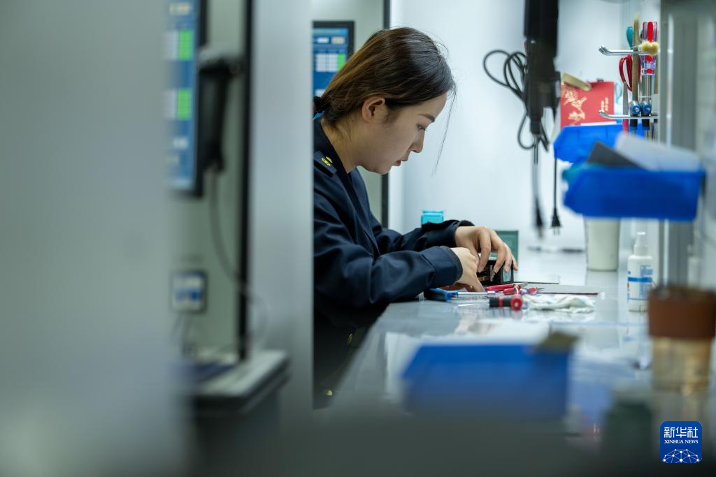 1月6日,拉萨基础设施段电务专修车间继电器检修工区的信号工德吉卓玛在检测继电器。新华社记者 旦增尼玛曲珠 摄