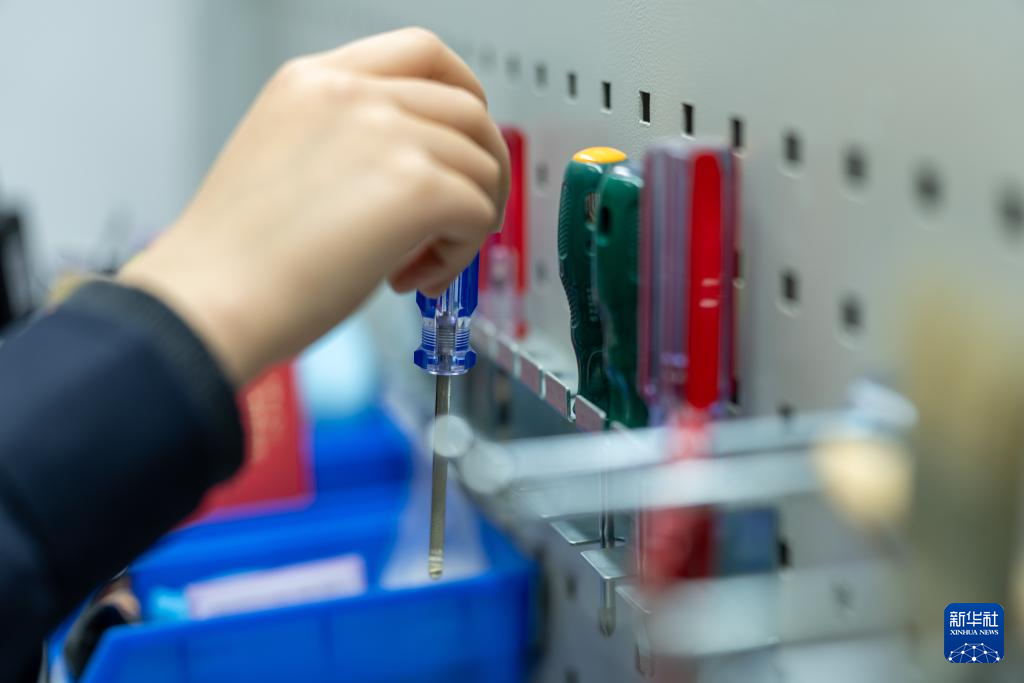 1月6日,拉萨基础设施段电务专修车间继电器检修工区的信号工路东燕在拿取螺丝刀。新华社记者 旦增尼玛曲珠 摄