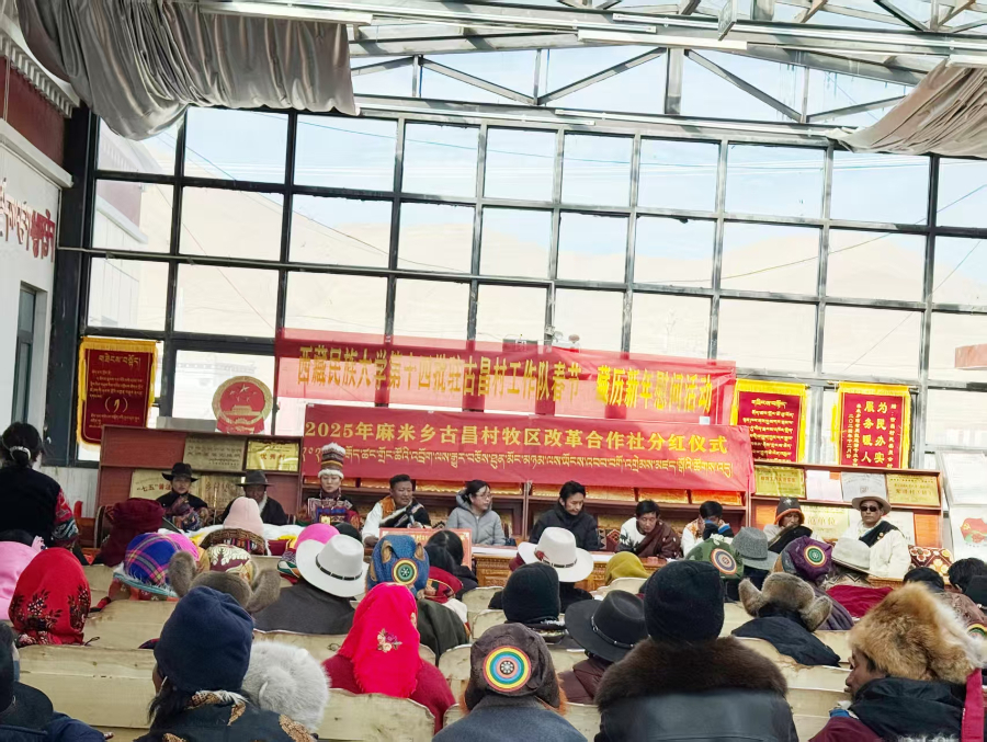 岁末将至,年味渐浓。1月14日,在春节、藏历新年双节来临之际,民大驻古昌村工作队先后助力古昌村开展2025年度集体经济分红大会、组织双节慰问活动,将发展成果惠及村民、把关怀温暖送达心间,为古昌村绘就丰收喜庆、暖冬祥和的乡村图景。改则县县委常委、政府副县长巴拉姆,农业农村和科技水利局局长达瓦扎西出席本次活动。