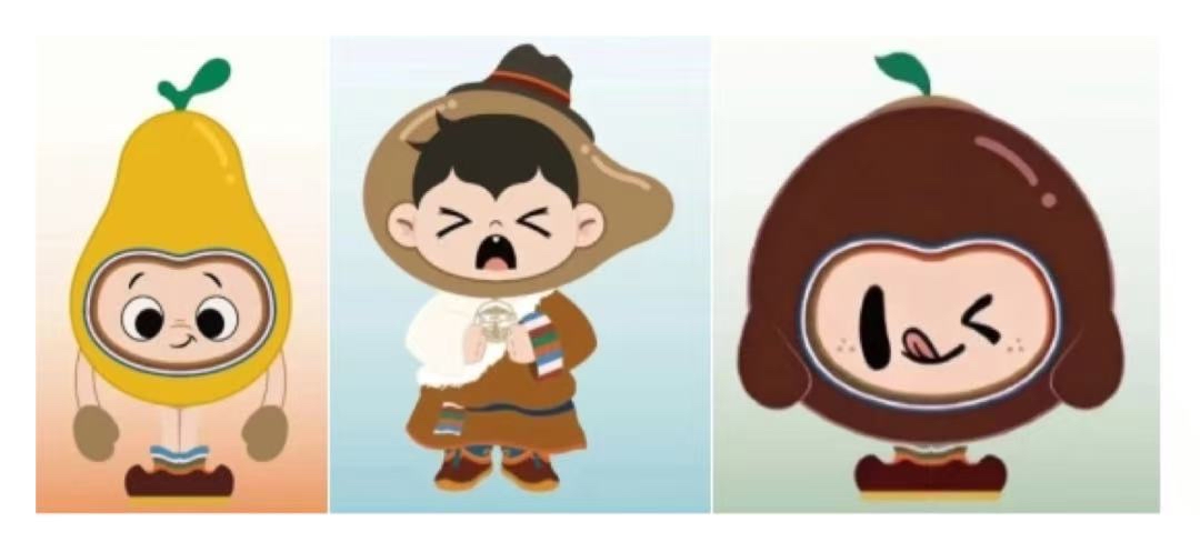 其中,堆孜啦,作为家族大家长与生态本源守护者,其形象承载着守护生命健康、传承藏药瑰宝、连接纯净自然的神圣职责;甘甘,身为智慧担当,原型为藏药材诃子果,肩负维护高原药源灵性、确保药材质地纯正的重要使命;露露,作为活力担当与疗效传递者,其原型源自甘露藏药代表性成药七十味珍珠丸,致力成为健康活力的信使。