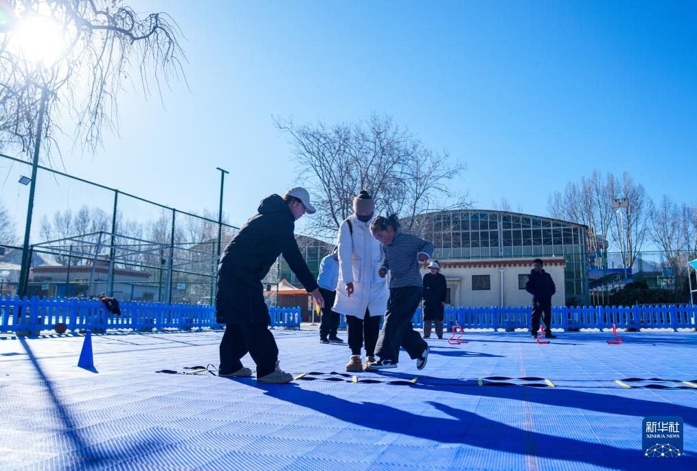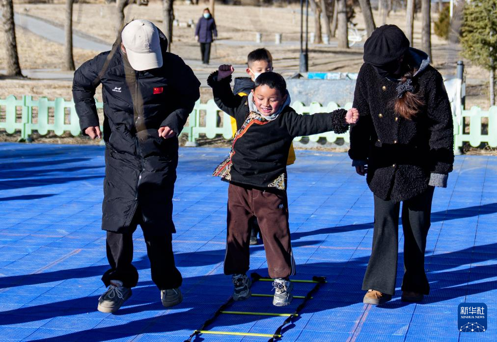1月22日,残障儿童在拉萨市全民健身体彩公园内参加“阳光残障儿童公益兴趣班”体适能训练课程。新华社记者 丁增尼达 摄